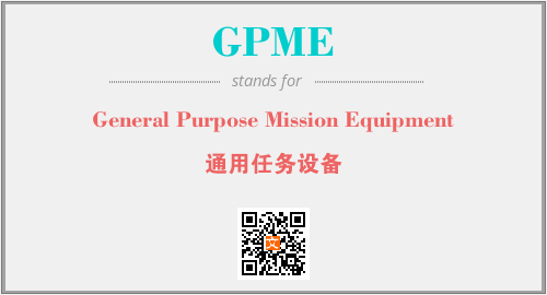 英文缩略词“GPME”经常作为“General Purpose Mission Equipment”的英文缩写来使用,中文表示:“通用任务设备”。本文将详细介绍英文缩写词GPME所代表英文单词,其对应的中文拼音、详细解释以及在英语中的流行度。此外,还有关于缩略词GPME的分类、应用领域及相关应用示例等。