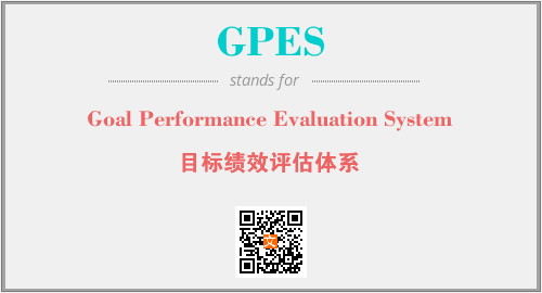 上述内容是“Goal Performance Evaluation System”作为“GPES”的缩写,解释为“目标绩效评估体系”时的信息,以及英文缩略词GPES所代表的英文单词,其对应的中文拼音、详细解释以及在英文中的流行度和相关分类、应用领域及应用示例等。