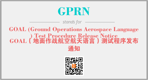 上述内容是“GOAL (Ground Operations Aerospace Language) Test Procedure Release Notice”作为“GPRN”的缩写,解释为“GOAL(地面作战航空航天语言)测试程序发布通知”时的信息,以及英文缩略词GPRN所代表的英文单词,其对应的中文拼音、详细解释以及在英文中的流行度和相关分类、应用领域及应用示例等。