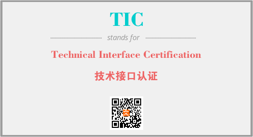 上述内容是“Technical Interface Certification”作为“TIC”的缩写,解释为“技术接口认证”时的信息,以及英文缩略词TIC所代表的英文单词,其对应的中文拼音、详细解释以及在英文中的流行度和相关分类、应用领域及应用示例等。