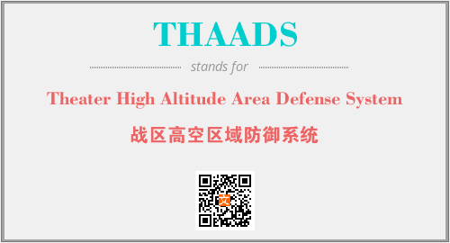 英文缩略词“THAADS”经常作为“Theater High Altitude Area Defense System”的英文缩写来使用,中文表示:“战区高空区域防御系统”。本文将详细介绍英文缩写词THAADS所代表英文单词,其对应的中文拼音、详细解释以及在英语中的流行度。此外,还有关于缩略词THAADS的分类、应用领域及相关应用示例等。