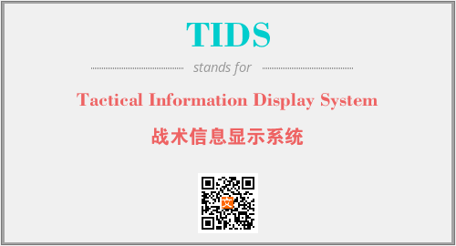 上述内容是“Tactical Information Display System”作为“TIDS”的缩写,解释为“战术信息显示系统”时的信息,以及英文缩略词TIDS所代表的英文单词,其对应的中文拼音、详细解释以及在英文中的流行度和相关分类、应用领域及应用示例等。