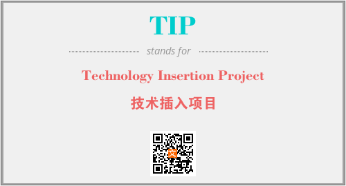 以上为Technology Insertion Project英文缩略词TIP的中文解释,以及该英文缩写在英语的流行度、分类和应用领域方面的信息。