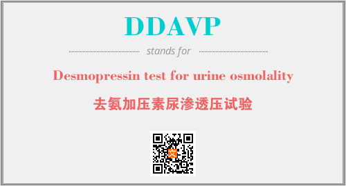 英文缩略词“DDAVP”经常作为“Desmopressin test for urine osmolality”的英文缩写来使用,中文表示:“去氨加压素尿渗透压试验”。本文将详细介绍英文缩写词DDAVP所代表英文单词,其对应的中文拼音、详细解释以及在英语中的流行度。此外,还有关于缩略词DDAVP的分类、应用领域及相关应用示例等。