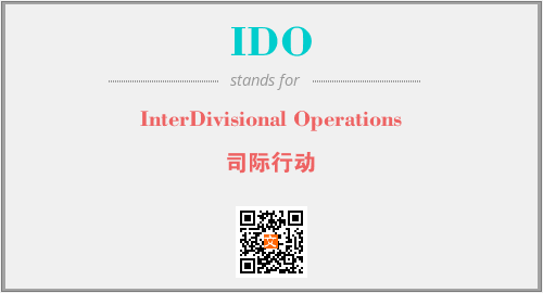 英文缩略词“IDO”经常作为“InterDivisional Operations”的英文缩写来使用,中文表示:“司际行动”。本文将详细介绍英文缩写词IDO所代表英文单词,其对应的中文拼音、详细解释以及在英语中的流行度。此外,还有关于缩略词IDO的分类、应用领域及相关应用示例等。