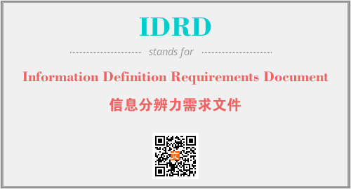 上述内容是“Information Definition Requirements Document”作为“IDRD”的缩写,解释为“信息分辨力需求文件”时的信息,以及英文缩略词IDRD所代表的英文单词,其对应的中文拼音、详细解释以及在英文中的流行度和相关分类、应用领域及应用示例等。