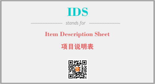 英文缩略词“IDS”经常作为“Item Description Sheet”的英文缩写来使用,中文表示:“项目说明表”。本文将详细介绍英文缩写词IDS所代表英文单词,其对应的中文拼音、详细解释以及在英语中的流行度。此外,还有关于缩略词IDS的分类、应用领域及相关应用示例等。