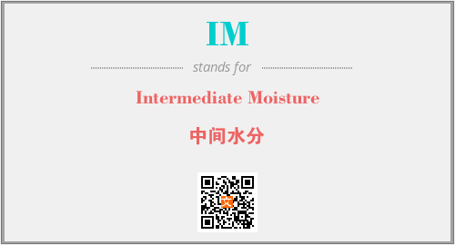 上述内容是“Intermediate Moisture”作为“IM”的缩写,解释为“中间水分”时的信息,以及英文缩略词IM所代表的英文单词,其对应的中文拼音、详细解释以及在英文中的流行度和相关分类、应用领域及应用示例等。