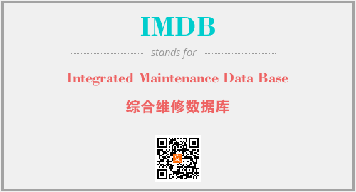 英文缩略词“IMDB”经常作为“Integrated Maintenance Data Base”的英文缩写来使用,中文表示:“综合维修数据库”。本文将详细介绍英文缩写词IMDB所代表英文单词,其对应的中文拼音、详细解释以及在英语中的流行度。此外,还有关于缩略词IMDB的分类、应用领域及相关应用示例等。