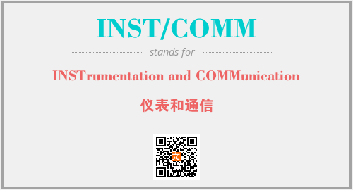 英文缩略词“INST/COMM”经常作为“INSTrumentation and COMMunication”的英文缩写来使用,中文表示:“仪表和通信”。本文将详细介绍英文缩写词INST/COMM所代表英文单词,其对应的中文拼音、详细解释以及在英语中的流行度。此外,还有关于缩略词INST/COMM的分类、应用领域及相关应用示例等。