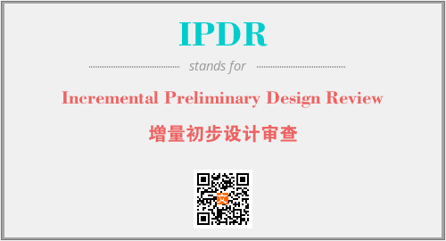 英文缩略词“IPDR”经常作为“Incremental Preliminary Design Review”的英文缩写来使用,中文表示:“增量初步设计审查”。本文将详细介绍英文缩写词IPDR所代表英文单词,其对应的中文拼音、详细解释以及在英语中的流行度。此外,还有关于缩略词IPDR的分类、应用领域及相关应用示例等。