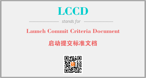英文缩略词“LCCD”经常作为“Launch Commit Criteria Document”的英文缩写来使用,中文表示:“启动提交标准文档”。本文将详细介绍英文缩写词LCCD所代表英文单词,其对应的中文拼音、详细解释以及在英语中的流行度。此外,还有关于缩略词LCCD的分类、应用领域及相关应用示例等。