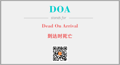 上述内容是“Dead On Arrival”作为“DOA”的缩写,解释为“到达时死亡”时的信息,以及英文缩略词DOA所代表的英文单词,其对应的中文拼音、详细解释以及在英文中的流行度和相关分类、应用领域及应用示例等。