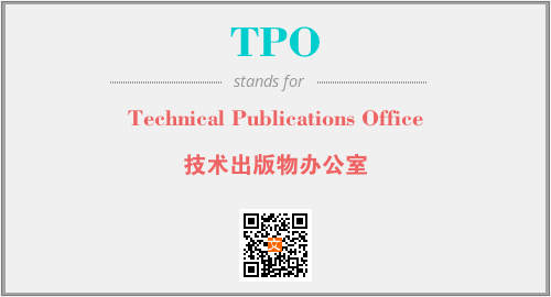英文缩略词“TPO”经常作为“Technical Publications Office”的英文缩写来使用,中文表示:“技术出版物办公室”。本文将详细介绍英文缩写词TPO所代表英文单词,其对应的中文拼音、详细解释以及在英语中的流行度。此外,还有关于缩略词TPO的分类、应用领域及相关应用示例等。