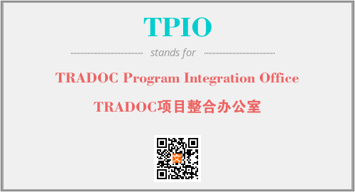 上述内容是“TRADOC Program Integration Office”作为“TPIO”的缩写,解释为“TRADOC项目整合办公室”时的信息,以及英文缩略词TPIO所代表的英文单词,其对应的中文拼音、详细解释以及在英文中的流行度和相关分类、应用领域及应用示例等。