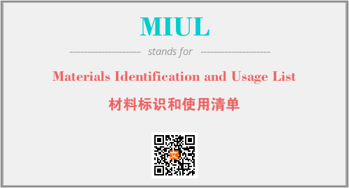 上述内容是“Materials Identification and Usage List”作为“MIUL”的缩写,解释为“材料标识和使用清单”时的信息,以及英文缩略词MIUL所代表的英文单词,其对应的中文拼音、详细解释以及在英文中的流行度和相关分类、应用领域及应用示例等。