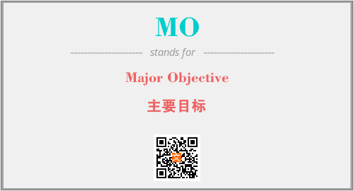 上述内容是“Major Objective”作为“MO”的缩写,解释为“主要目标”时的信息,以及英文缩略词MO所代表的英文单词,其对应的中文拼音、详细解释以及在英文中的流行度和相关分类、应用领域及应用示例等。