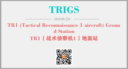 上述内容是“TR1 (Tactical Reconnaissance 1 aircraft) Ground Station”作为“TRIGS”的缩写,解释为“TR1(战术侦察机1)地面站”时的信息,以及英文缩略词TRIGS所代表的英文单词,其对应的中文拼音、详细解释以及在英文中的流行度和相关分类、应用领域及应用示例等。