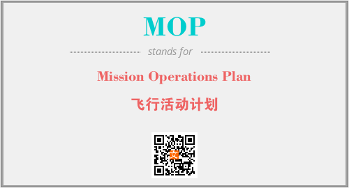 上述内容是“Mission Operations Plan”作为“MOP”的缩写,解释为“飞行活动计划”时的信息,以及英文缩略词MOP所代表的英文单词,其对应的中文拼音、详细解释以及在英文中的流行度和相关分类、应用领域及应用示例等。