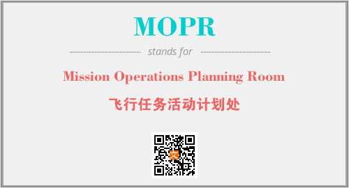 英文缩略词“MOPR”经常作为“Mission Operations Planning Room”的英文缩写来使用,中文表示:“飞行任务活动计划处”。本文将详细介绍英文缩写词MOPR所代表英文单词,其对应的中文拼音、详细解释以及在英语中的流行度。此外,还有关于缩略词MOPR的分类、应用领域及相关应用示例等。