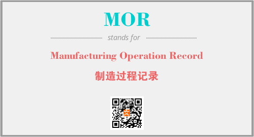 英文缩略词“MOR”经常作为“Manufacturing Operation Record”的英文缩写来使用,中文表示:“制造过程记录”。本文将详细介绍英文缩写词MOR所代表英文单词,其对应的中文拼音、详细解释以及在英语中的流行度。此外,还有关于缩略词MOR的分类、应用领域及相关应用示例等。
