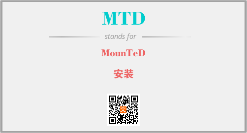 上述内容是“MounTeD”作为“MTD”的缩写,解释为“安装”时的信息,以及英文缩略词MTD所代表的英文单词,其对应的中文拼音、详细解释以及在英文中的流行度和相关分类、应用领域及应用示例等。