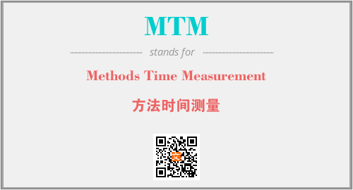 英文缩略词“MTM”经常作为“Methods Time Measurement”的英文缩写来使用,中文表示:“方法时间测量”。本文将详细介绍英文缩写词MTM所代表英文单词,其对应的中文拼音、详细解释以及在英语中的流行度。此外,还有关于缩略词MTM的分类、应用领域及相关应用示例等。