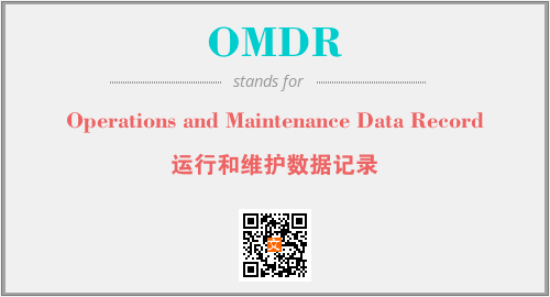 英文缩略词“OMDR”经常作为“Operations and Maintenance Data Record”的英文缩写来使用,中文表示:“运行和维护数据记录”。本文将详细介绍英文缩写词OMDR所代表英文单词,其对应的中文拼音、详细解释以及在英语中的流行度。此外,还有关于缩略词OMDR的分类、应用领域及相关应用示例等。