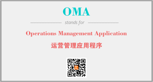 英文缩略词“OMA”经常作为“Operations Management Application”的英文缩写来使用,中文表示:“运营管理应用程序”。本文将详细介绍英文缩写词OMA所代表英文单词,其对应的中文拼音、详细解释以及在英语中的流行度。此外,还有关于缩略词OMA的分类、应用领域及相关应用示例等。