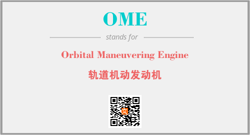 英文缩略词“OME”经常作为“Orbital Maneuvering Engine”的英文缩写来使用,中文表示:“轨道机动发动机”。本文将详细介绍英文缩写词OME所代表英文单词,其对应的中文拼音、详细解释以及在英语中的流行度。此外,还有关于缩略词OME的分类、应用领域及相关应用示例等。