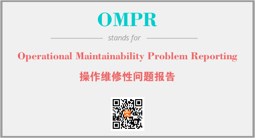 英文缩略词“OMPR”经常作为“Operational Maintainability Problem Reporting”的英文缩写来使用,中文表示:“操作维修性问题报告”。本文将详细介绍英文缩写词OMPR所代表英文单词,其对应的中文拼音、详细解释以及在英语中的流行度。此外,还有关于缩略词OMPR的分类、应用领域及相关应用示例等。