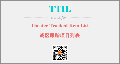 英文缩略词“TTIL”经常作为“Theater Tracked Item List”的英文缩写来使用,中文表示:“战区跟踪项目列表”。本文将详细介绍英文缩写词TTIL所代表英文单词,其对应的中文拼音、详细解释以及在英语中的流行度。此外,还有关于缩略词TTIL的分类、应用领域及相关应用示例等。
