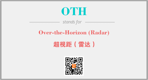 英文缩略词“OTH”经常作为“Over-the-Horizon (Radar)”的英文缩写来使用,中文表示:“超视距(雷达)”。本文将详细介绍英文缩写词OTH所代表英文单词,其对应的中文拼音、详细解释以及在英语中的流行度。此外,还有关于缩略词OTH的分类、应用领域及相关应用示例等。