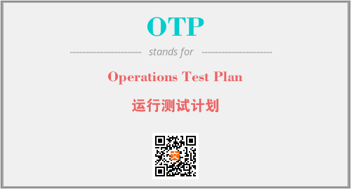 英文缩略词“OTP”经常作为“Operations Test Plan”的英文缩写来使用,中文表示:“运行测试计划”。本文将详细介绍英文缩写词OTP所代表英文单词,其对应的中文拼音、详细解释以及在英语中的流行度。此外,还有关于缩略词OTP的分类、应用领域及相关应用示例等。