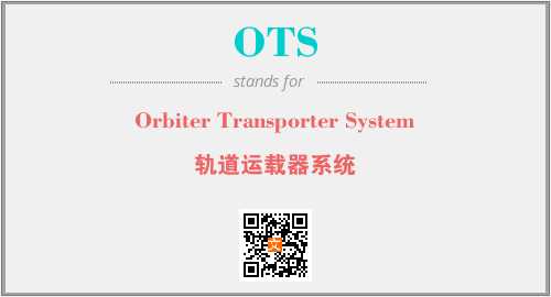 上述内容是“Orbiter Transporter System”作为“OTS”的缩写,解释为“轨道运载器系统”时的信息,以及英文缩略词OTS所代表的英文单词,其对应的中文拼音、详细解释以及在英文中的流行度和相关分类、应用领域及应用示例等。
