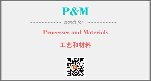上述内容是“Processes and Materials”作为“P&M”的缩写,解释为“工艺和材料”时的信息,以及英文缩略词P&M所代表的英文单词,其对应的中文拼音、详细解释以及在英文中的流行度和相关分类、应用领域及应用示例等。