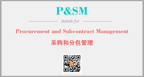 英文缩略词“P&SM”经常作为“Procurement and Subcontract Management”的英文缩写来使用,中文表示:“采购和分包管理”。本文将详细介绍英文缩写词P&SM所代表英文单词,其对应的中文拼音、详细解释以及在英语中的流行度。此外,还有关于缩略词P&SM的分类、应用领域及相关应用示例等。