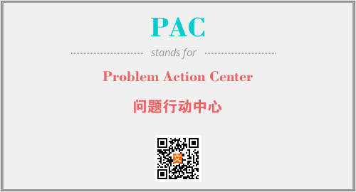 上述内容是“Problem Action Center”作为“PAC”的缩写,解释为“问题行动中心”时的信息,以及英文缩略词PAC所代表的英文单词,其对应的中文拼音、详细解释以及在英文中的流行度和相关分类、应用领域及应用示例等。