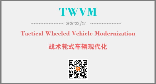上述内容是“Tactical Wheeled Vehicle Modernization”作为“TWVM”的缩写,解释为“战术轮式车辆现代化”时的信息,以及英文缩略词TWVM所代表的英文单词,其对应的中文拼音、详细解释以及在英文中的流行度和相关分类、应用领域及应用示例等。