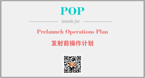 英文缩略词“POP”经常作为“Prelaunch Operations Plan”的英文缩写来使用,中文表示:“发射前操作计划”。本文将详细介绍英文缩写词POP所代表英文单词,其对应的中文拼音、详细解释以及在英语中的流行度。此外,还有关于缩略词POP的分类、应用领域及相关应用示例等。