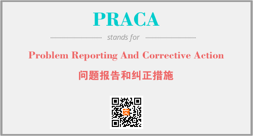 上述内容是“Problem Reporting And Corrective Action”作为“PRACA”的缩写,解释为“问题报告和纠正措施”时的信息,以及英文缩略词PRACA所代表的英文单词,其对应的中文拼音、详细解释以及在英文中的流行度和相关分类、应用领域及应用示例等。
