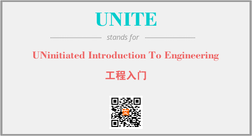 英文缩略词“UNITE”经常作为“UNinitiated Introduction To Engineering”的英文缩写来使用,中文表示:“工程入门”。本文将详细介绍英文缩写词UNITE所代表英文单词,其对应的中文拼音、详细解释以及在英语中的流行度。此外,还有关于缩略词UNITE的分类、应用领域及相关应用示例等。