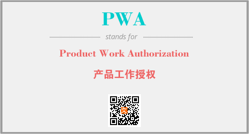 英文缩略词“PWA”经常作为“Product Work Authorization”的英文缩写来使用,中文表示:“产品工作授权”。本文将详细介绍英文缩写词PWA所代表英文单词,其对应的中文拼音、详细解释以及在英语中的流行度。此外,还有关于缩略词PWA的分类、应用领域及相关应用示例等。