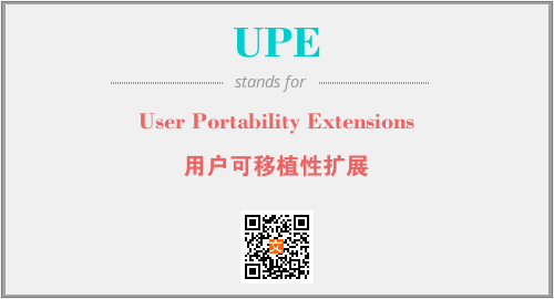 上述内容是“User Portability Extensions”作为“UPE”的缩写,解释为“用户可移植性扩展”时的信息,以及英文缩略词UPE所代表的英文单词,其对应的中文拼音、详细解释以及在英文中的流行度和相关分类、应用领域及应用示例等。
