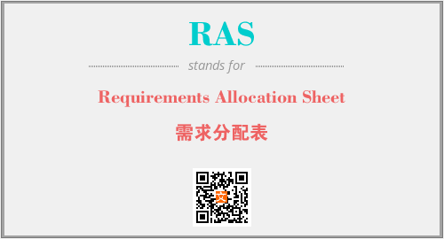 上述内容是“Requirements Allocation Sheet”作为“RAS”的缩写,解释为“需求分配表”时的信息,以及英文缩略词RAS所代表的英文单词,其对应的中文拼音、详细解释以及在英文中的流行度和相关分类、应用领域及应用示例等。