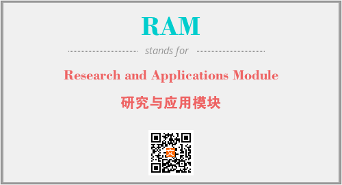 英文缩略词“RAM”经常作为“Research and Applications Module”的英文缩写来使用,中文表示:“研究与应用模块”。本文将详细介绍英文缩写词RAM所代表英文单词,其对应的中文拼音、详细解释以及在英语中的流行度。此外,还有关于缩略词RAM的分类、应用领域及相关应用示例等。