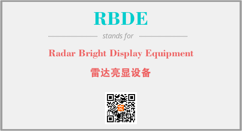 英文缩略词“RBDE”经常作为“Radar Bright Display Equipment”的英文缩写来使用,中文表示:“雷达亮显设备”。本文将详细介绍英文缩写词RBDE所代表英文单词,其对应的中文拼音、详细解释以及在英语中的流行度。此外,还有关于缩略词RBDE的分类、应用领域及相关应用示例等。