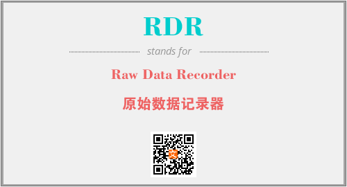 英文缩略词“RDR”经常作为“Raw Data Recorder”的英文缩写来使用,中文表示:“原始数据记录器”。本文将详细介绍英文缩写词RDR所代表英文单词,其对应的中文拼音、详细解释以及在英语中的流行度。此外,还有关于缩略词RDR的分类、应用领域及相关应用示例等。