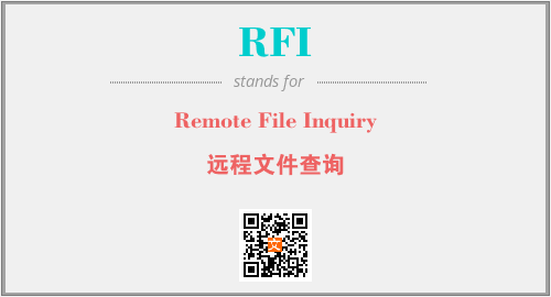 英文缩略词“RFI”经常作为“Remote File Inquiry”的英文缩写来使用,中文表示:“远程文件查询”。本文将详细介绍英文缩写词RFI所代表英文单词,其对应的中文拼音、详细解释以及在英语中的流行度。此外,还有关于缩略词RFI的分类、应用领域及相关应用示例等。