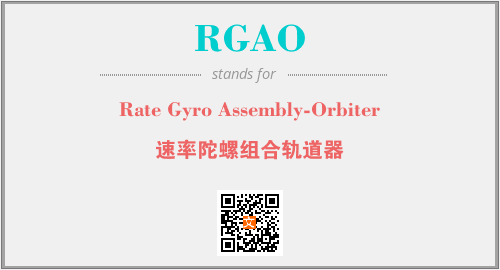 上述内容是“Rate Gyro Assembly-Orbiter”作为“RGAO”的缩写,解释为“速率陀螺组合轨道器”时的信息,以及英文缩略词RGAO所代表的英文单词,其对应的中文拼音、详细解释以及在英文中的流行度和相关分类、应用领域及应用示例等。